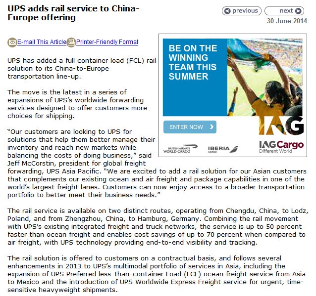 ![]() 提高歐洲與中國(guó)彈性地板物流高效及低成本的新渠道--ups新增中國(guó)至歐洲鐵路運(yùn)輸服務(wù) ups在中國(guó)至歐洲的運(yùn)輸路線中新增了集裝箱鐵路運(yùn)輸服務(wù)方案,這項(xiàng)方案也是ups國(guó)際運(yùn)輸最新系列計(jì)劃中的一項(xiàng),此方案將逐步為客戶 提供更多的線路選擇。 清查.拓展新市場(chǎng),以保持業(yè)務(wù)發(fā)展與開(kāi)銷(xiāo)的平衡。所以我們積極地為ups亞洲的客戶們建立起了一套鐵路交通方案以補(bǔ)充現(xiàn)有的航運(yùn)和空運(yùn)線路, 成為全世界最大的運(yùn)輸通道之一!客戶現(xiàn)在可以享受到更寬泛的運(yùn)輸服務(wù)。 網(wǎng)絡(luò),速度比傳統(tǒng)海運(yùn)提高了50%,成本比空運(yùn)減少了70%。同時(shí)ups的貨物追蹤定位技術(shù)從頭到尾為客戶提供了安全和信譽(yù)的保障。 快遞服務(wù)以及時(shí)效性強(qiáng)和重量級(jí)的運(yùn)輸服務(wù)。